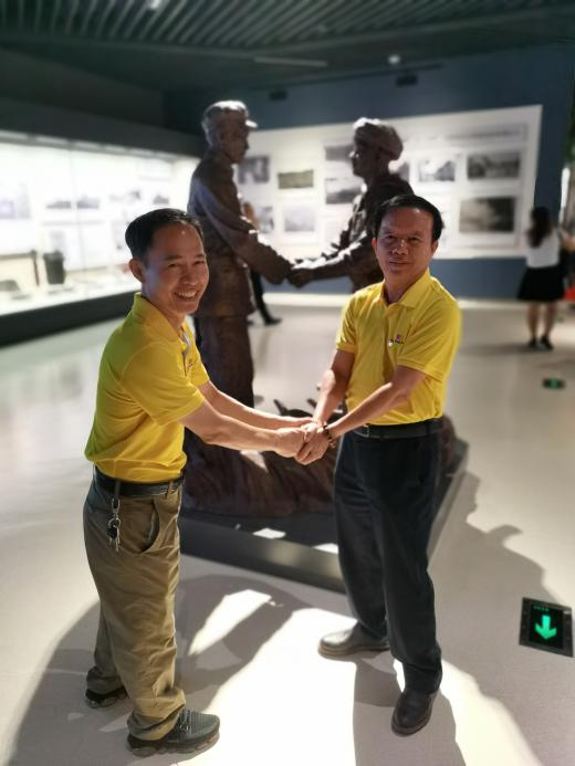 黨員同志們?cè)谡滟F的雕塑前合影留念