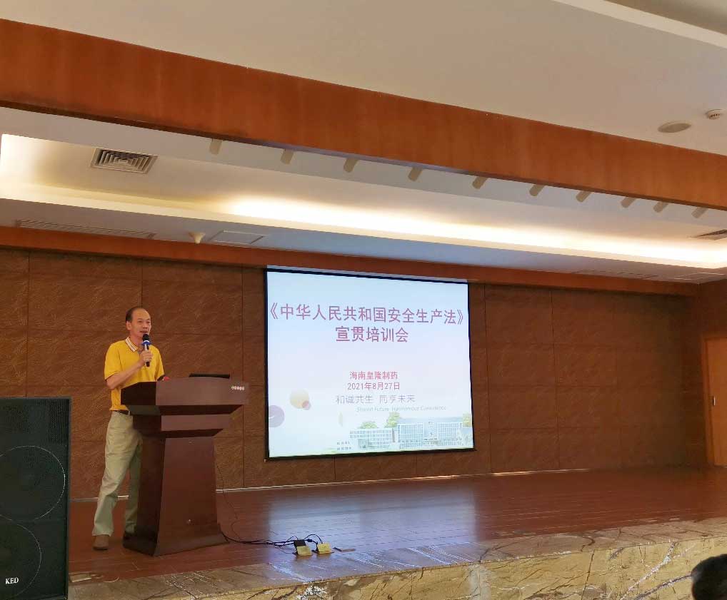 海南皇隆制藥股份有限公司高度重視此次新安全生產(chǎn)法的頒布實施,為了提高全體員工對新《安全生產(chǎn)法》的認(rèn)識,全面加強安全生產(chǎn)法治觀念,提升企業(yè)安全管理水平,2021年8月27日組織開展新《安全生產(chǎn)法》宣貫培訓(xùn)會議,公司安委會主任陳益智、副主任史江永、何晶及陳國華、馬和東、葉華等16名安委會成員、公司專職(兼職)安全員、各部門領(lǐng)導(dǎo)及骨干成員等參加了此次培訓(xùn)