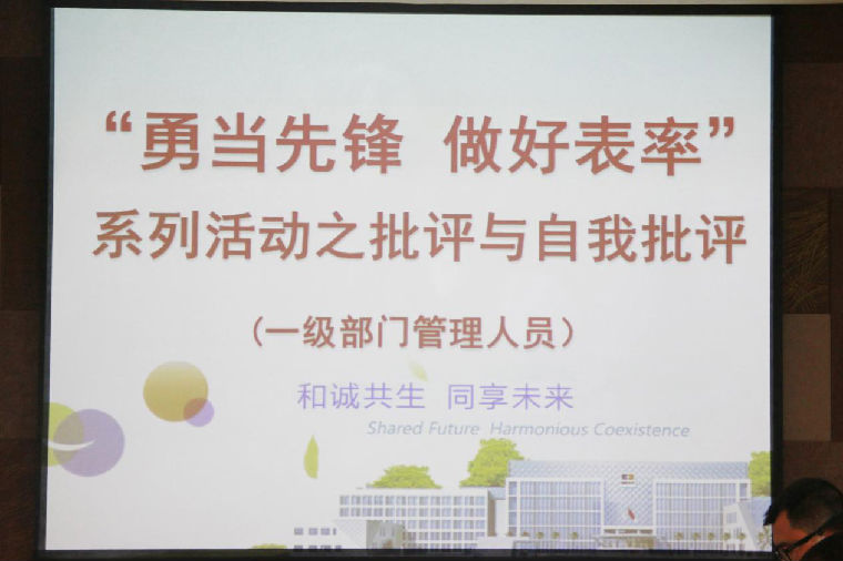 結(jié)合企業(yè)自身情況,陳益智總經(jīng)理對所有管理干部提出了五點要求,一是各級干部要嚴格遵守公司紀律和制度,二是要加強自身修養(yǎng)和學習,三是要高標準執(zhí)行法律法規(guī),四是要在領導干部隊伍中率先垂范開展自我批評,五是要弘揚企業(yè)文化和創(chuàng)新精神。為此,陳總號召全體管理干部以批評和自我批評為主要方式,在全公司范圍內(nèi)開展“勇當先鋒 做好表率”系列活動。